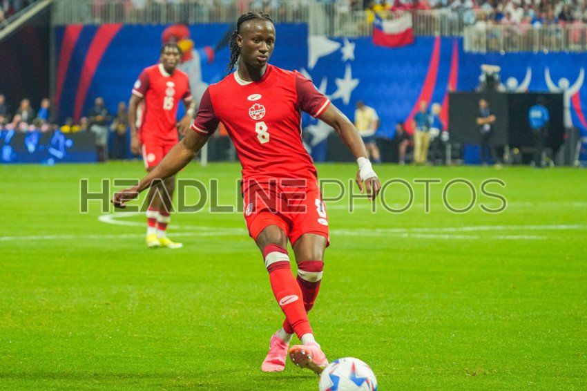 Atlanta, Georgia, USA, June 20, 2024, Canada player Ismaël Koné #8 makes a pass during the 2024 Copa America at Mercedes-Benz Stadium. (Photo Credit: Marty Jean-Louis)