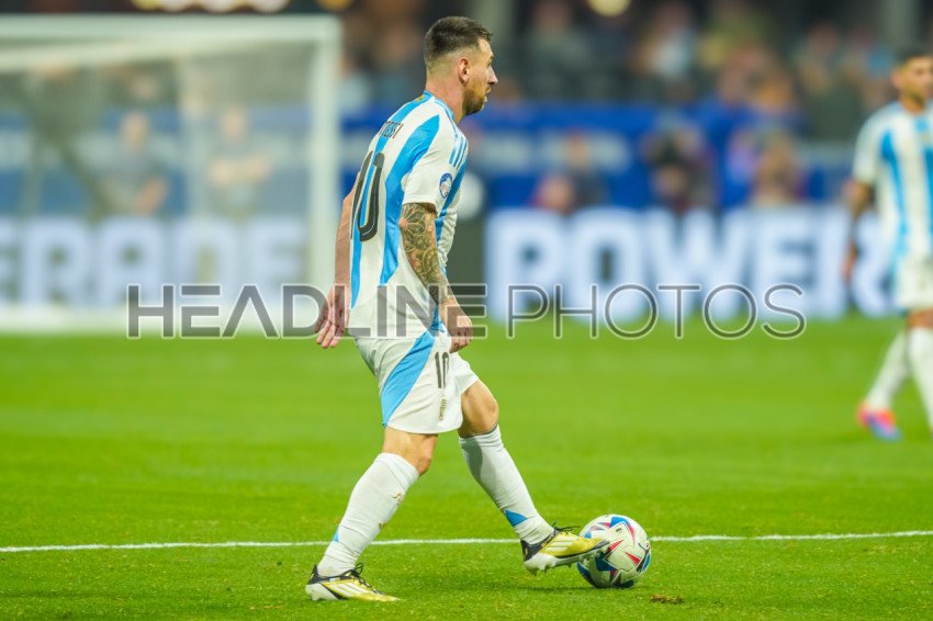 Atlanta, Georgia, USA, June 20, 2024, Argentina forward Lionel Messi #10 look to make a pass during the 2024 Copa America at Mercedes-Benz Stadium. (Photo Credit: Marty Jean-Louis)