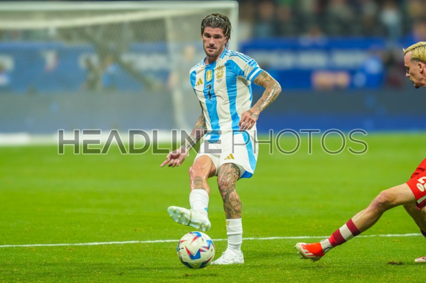 Atlanta, Georgia, USA, June 20, 2024, Argentina midfielder Rodrigo De Paul #7 makes a pass during the 2024 Copa America at Mercedes-Benz Stadium. (Photo Credit: Marty Jean-Louis)