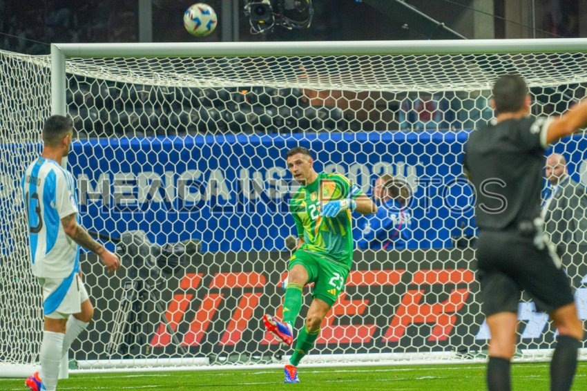 Atlanta, Georgia, USA, June 20, 2024, Argentina goalkeeper Emiliano Martínez #23 makes a goal kick during the 2024 Copa America at Mercedes-Benz Stadium. (Photo Credit: Marty Jean-Louis)