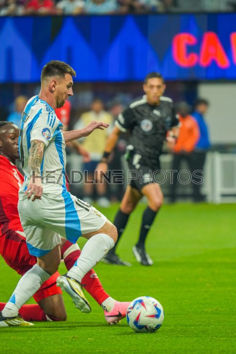 Atlanta, Georgia, USA, June 20, 2024, Argentina forward Lionel Messi #10 runs up field during the 2024 Copa America at Mercedes-Benz Stadium. (Photo Credit: Marty Jean-Louis)