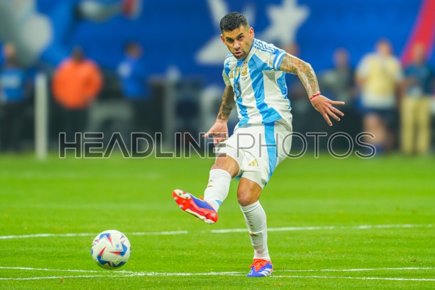 Atlanta, Georgia, USA, June 20, 2024, Argentina defender Cristian Romero #13 makes a pass during the 2024 Copa America at Mercedes-Benz Stadium. (Photo Credit: Marty Jean-Louis)