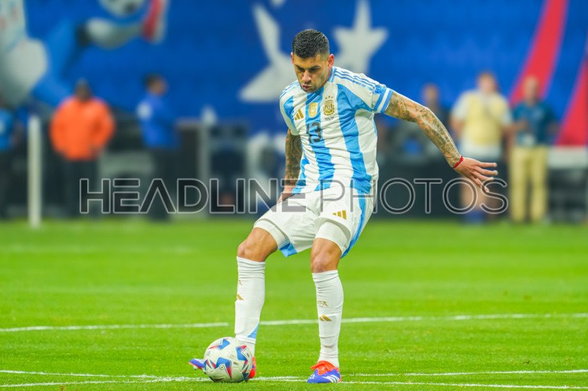 Atlanta, Georgia, USA, June 20, 2024, Argentina defender Cristian Romero #13 makes a pass during the 2024 Copa America at Mercedes-Benz Stadium. (Photo Credit: Marty Jean-Louis)