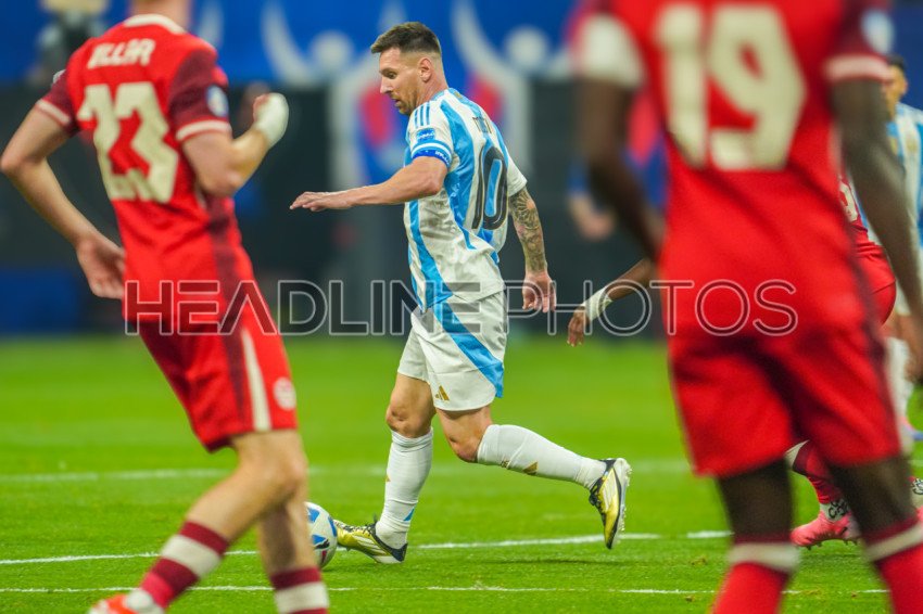 Atlanta, Georgia, USA, June 20, 2024, Argentina forward Lionel Messi #10 runs up field during the 2024 Copa America at Mercedes-Benz Stadium. (Photo Credit: Marty Jean-Louis)