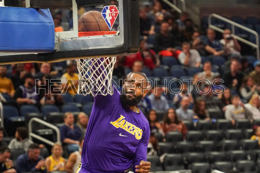 Orlando, Florida, USA, January 21, 2022, Los Angeles Lakers Small Forward Lebron James dunking as he warms up before the game at the Amway Center. (Photo Credit: Marty Jean-Louis)