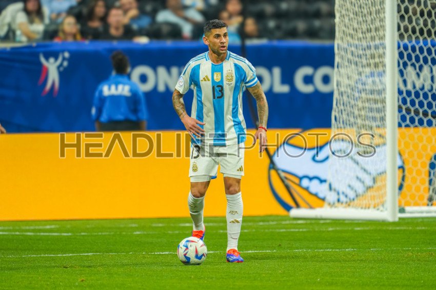 Atlanta, Georgia, USA, June 20, 2024, Argentina defender Cristian Romero #13 look to make a pass during the 2024 Copa America at Mercedes-Benz Stadium. (Photo Credit: Marty Jean-Louis)