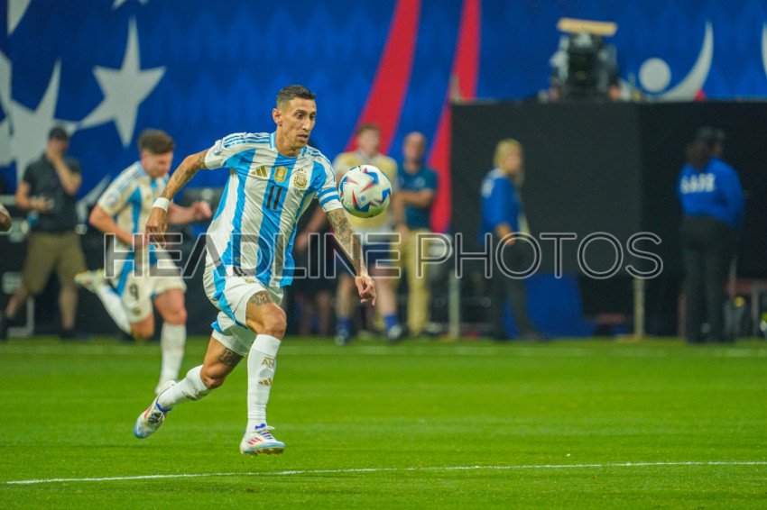 Atlanta, Georgia, USA, June 20, 2024, Argentina's Ángel Di María #11 runs after a pass during the 2024 Copa America at Mercedes-Benz Stadium. (Photo Credit: Marty Jean-Louis)