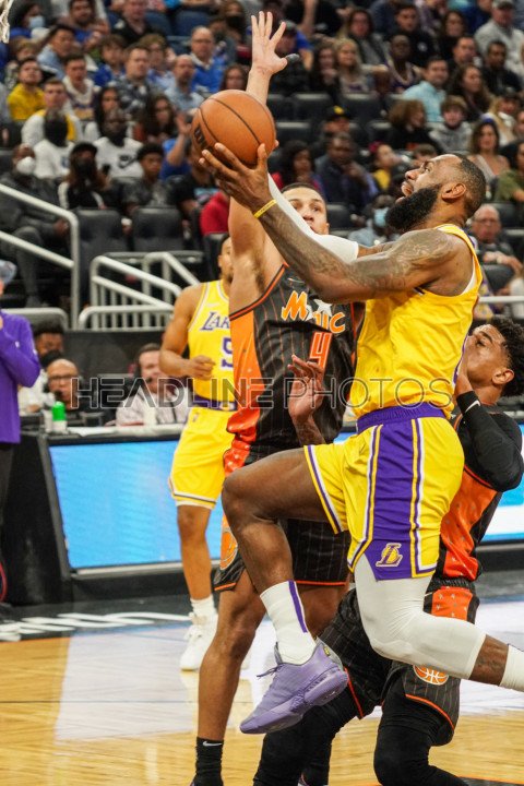 Orlando, Florida, USA, January 21, 2022, Los Angeles Lakers Small Forward Lebron James #6 attempt to make a shot during the first quarter at the Amway Center. (Photo Credit: Marty Jean-Louis)