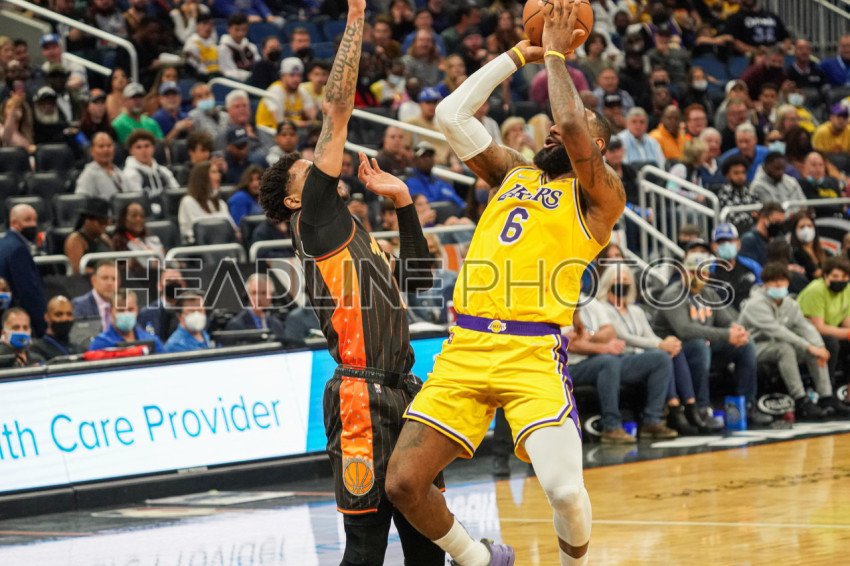 Orlando, Florida, USA, January 21, 2022, Los Angeles Lakers Small Forward Lebron James #6 attempt to make a shot during the first quarter at the Amway Center. (Photo Credit: Marty Jean-Louis)