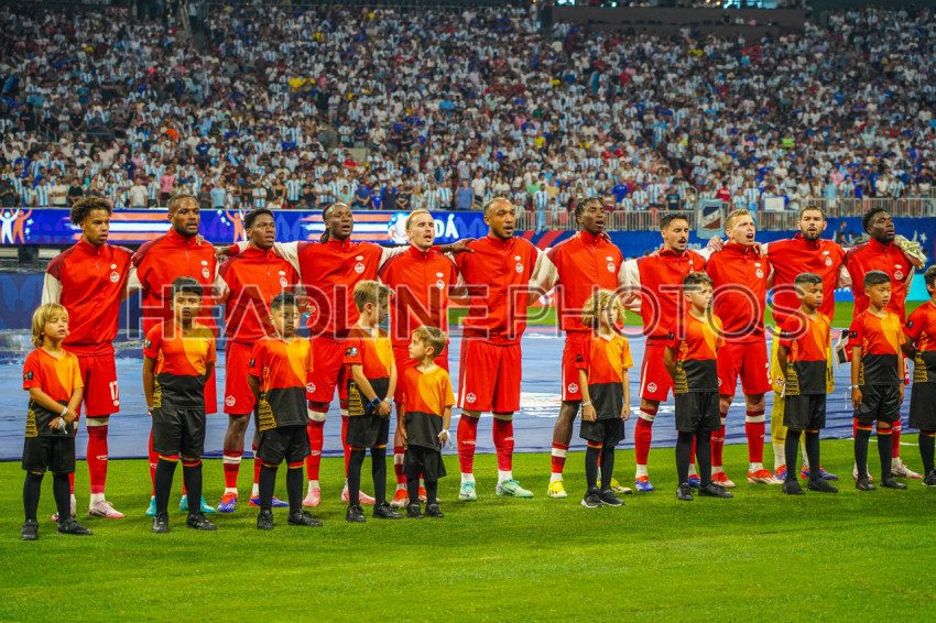 Atlanta, Georgia, USA, June 20, 2024, Canada's starting line up during the National Anthem during the 2024 Copa America at Mercedes-Benz Stadium. (Photo Credit: Marty Jean-Louis)