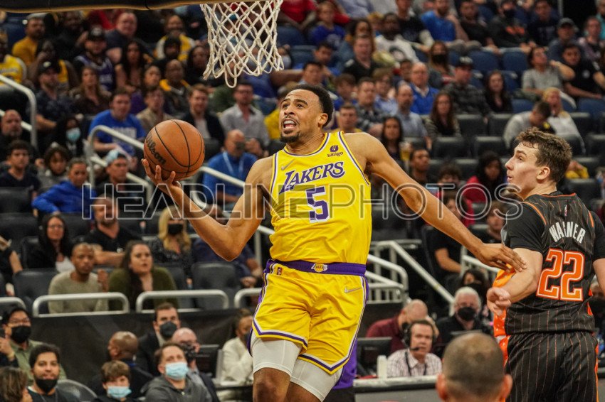 Orlando, Florida, USA, January 21, 2022, Los Angeles Lakers Shooting Guard Talen Horton-Tucker #5 attempt to make a shot at the Amway Center. (Photo Credit: Marty Jean-Louis)