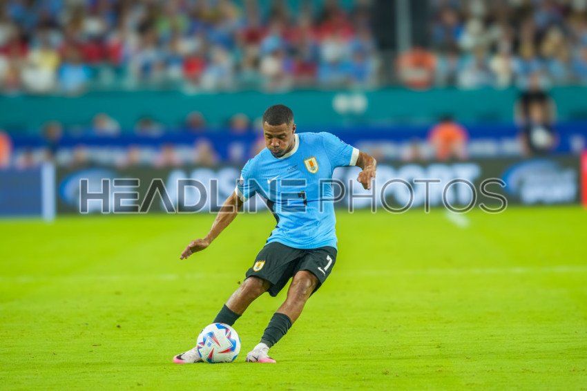 Miami Gardens, Florida, USA, June 20, 2024, Uruguay player Nicolás de la Cruz #7 makes a pass during the 2024 Copa America at the Hard Rock Stadium. (Photo Credit: Marty Jean-Louis)
