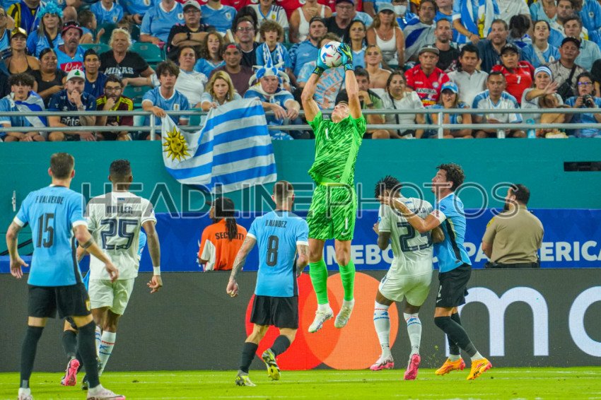 Miami Gardens, Florida, USA, June 20, 2024, Uruguay goalkeeper Sergio Rochet #1 makes a save during the 2024 Copa America at the Hard Rock Stadium. (Photo Credit: Marty Jean-Louis)