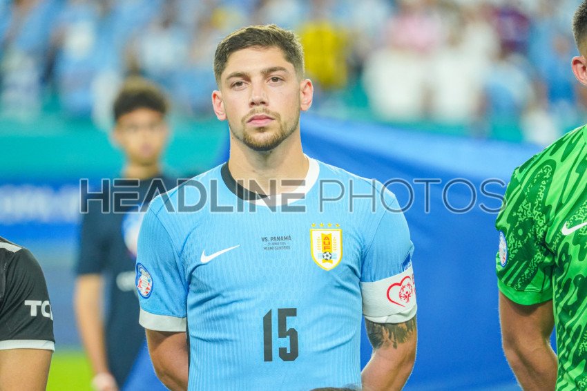 Miami Gardens, Florida, USA, June 20, 2024, Uruguay player Federico Valverde #15 at the opening ceremony during the 2024 Copa America at the Hard Rock Stadium. (Photo Credit: Marty Jean-Louis)