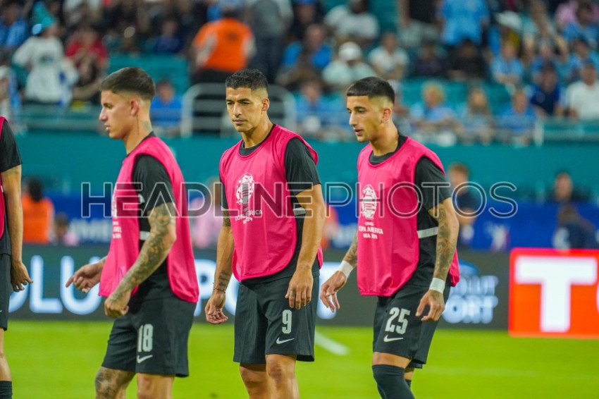 Miami Gardens, Florida, USA, June 20, 2024, Uruguay forward Luis Suarez #9 warming up during the 2024 Copa America at the Hard Rock Stadium. (Photo Credit: Marty Jean-Louis)