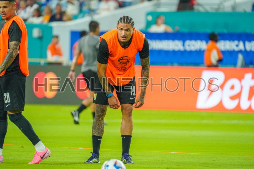 Miami Gardens, Florida, USA, June 20, 2024, Uruguay forward Darwin Núñez #19 warming up during the 2024 Copa America at the Hard Rock Stadium. (Photo Credit: Marty Jean-Louis)