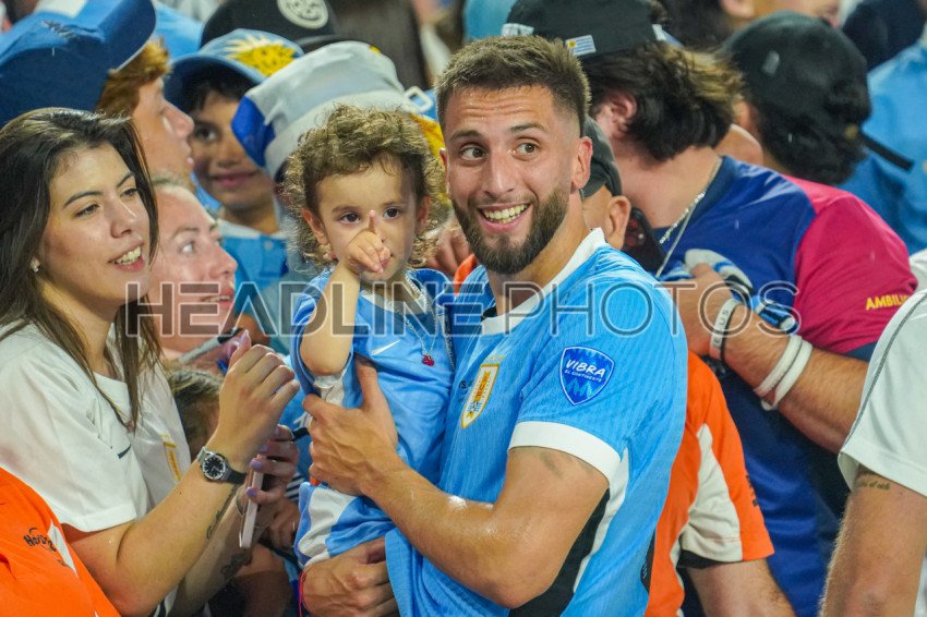 Miami Gardens, Florida, USA, June 20, 2024, Uruguay player Rodrigo Bentancur #6 with his child during the 2024 Copa America at the Hard Rock Stadium. (Photo Credit: Marty Jean-Louis)