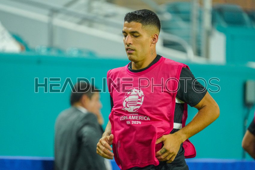Miami Gardens, Florida, USA, June 20, 2024, Uruguay forward Luis Suarez #9 warming up during the 2024 Copa America at the Hard Rock Stadium. (Photo Credit: Marty Jean-Louis)