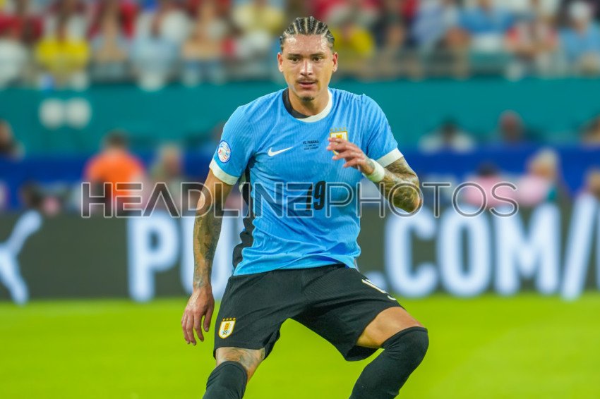 Miami Gardens, Florida, USA, June 20, 2024, Uruguay forward Darwin Núñez #19 during the 2024 Copa America at the Hard Rock Stadium. (Photo Credit: Marty Jean-Louis)