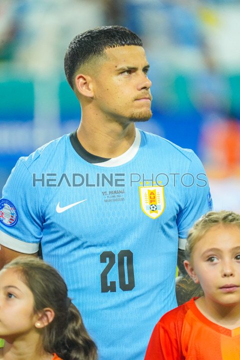 Miami Gardens, Florida, USA, June 20, 2024, Uruguay player Maximiliano Araújo #20 during the 2024 Copa America at the Hard Rock Stadium. (Photo Credit: Marty Jean-Louis)