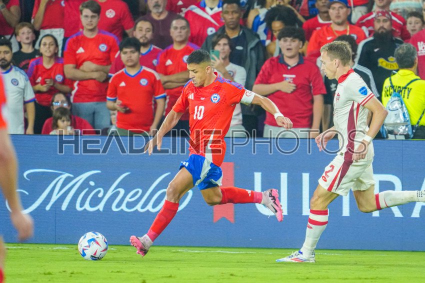Orlando, Florida, USA, June 20, 2024, Chile forward Alexis Sánchez #10 makes a pass during the 2024 Copa America at Inter&Co Stadium. (Photo Credit: Marty Jean-Louis)