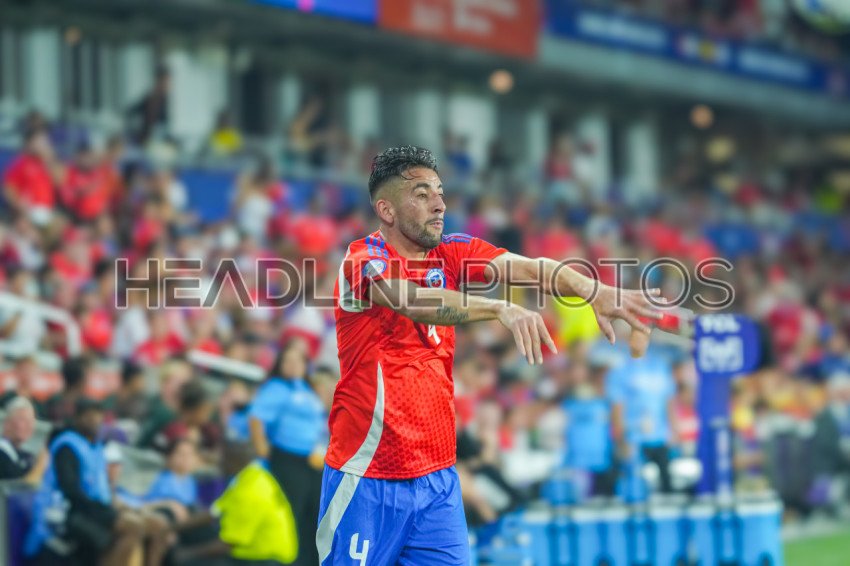 Orlando, Florida, USA, June 20, 2024, Chile defender Mauricio Isla #4 makes a throw during the 2024 Copa America at Inter&Co Stadium. (Photo Credit: Marty Jean-Louis)