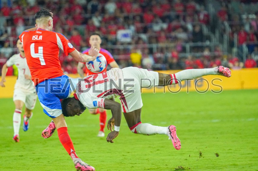 Orlando, Florida, USA, June 20, 2024, Canada's Alphonso Davies attempt to make a header but misses during the 2024 Copa America at Inter&Co Stadium. (Photo Credit: Marty Jean-Louis)