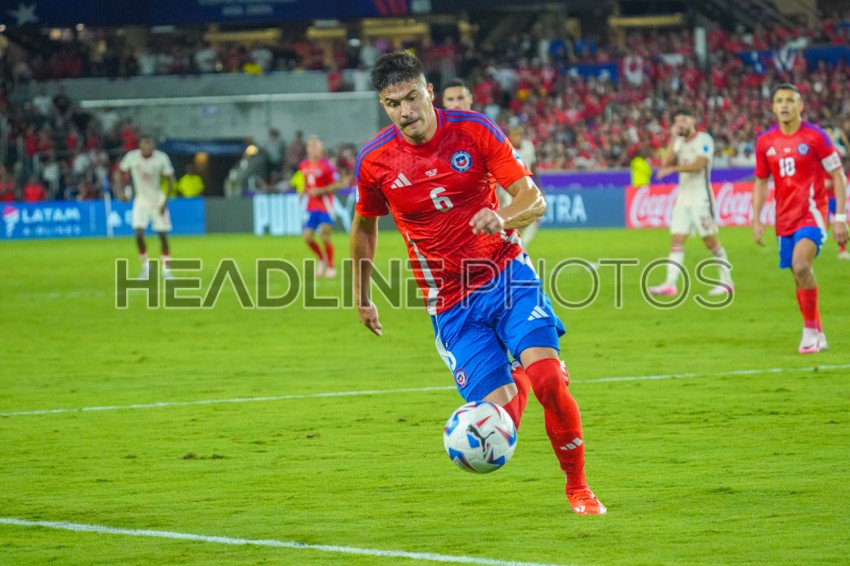 Orlando, Florida, USA, June 20, 2024, Chile player Thomas Galdames #6 runs after the ball to defend it during the 2024 Copa America at Inter&Co Stadium. (Photo Credit: Marty Jean-Louis)