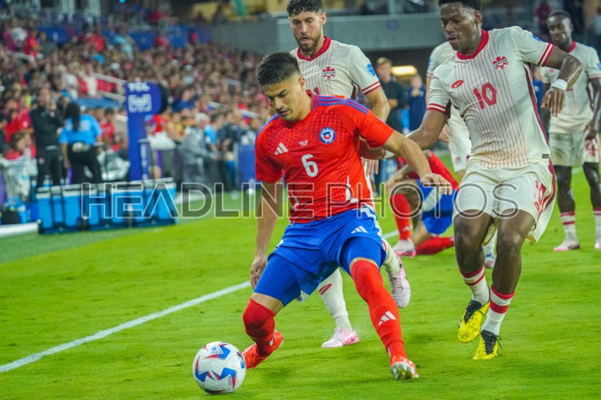 Orlando, Florida, USA, June 20, 2024, Chile player Thomas Galdames #6 runs after a pass during the 2024 Copa America at Inter&Co Stadium. (Photo Credit: Marty Jean-Louis)