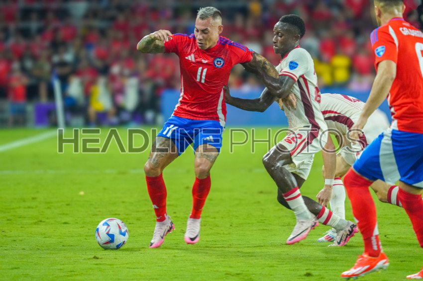 Orlando, Florida, USA, June 20, 2024, Chile forward Eduardo Vargas #11 fight to keep the ball from Richie Laryea #22 during the 2024 Copa America at Inter&Co Stadium. (Photo Credit: Marty Jean-Louis)