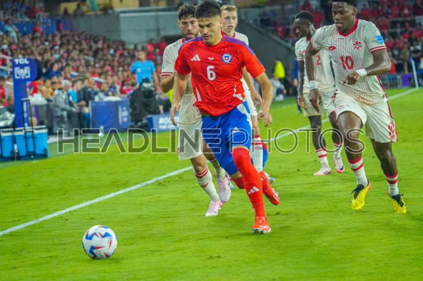 Orlando, Florida, USA, June 20, 2024, Chile player Thomas Galdames #6 runs after a pass during the 2024 Copa America at Inter&Co Stadium. (Photo Credit: Marty Jean-Louis)