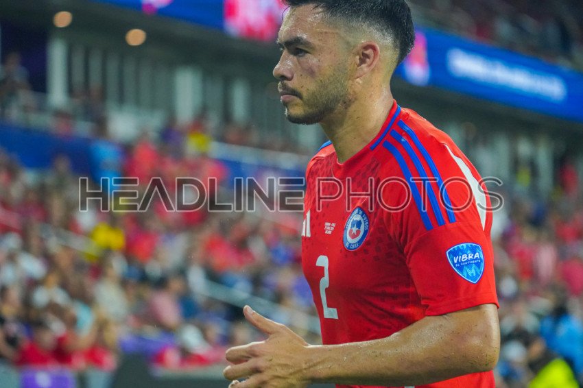 Orlando, Florida, USA, June 20, 2024, Chile player Gabriel Suazo #2 leaves the field after receiving a red card during the 2024 Copa America at Inter&Co Stadium. (Photo Credit: Marty Jean-Louis)