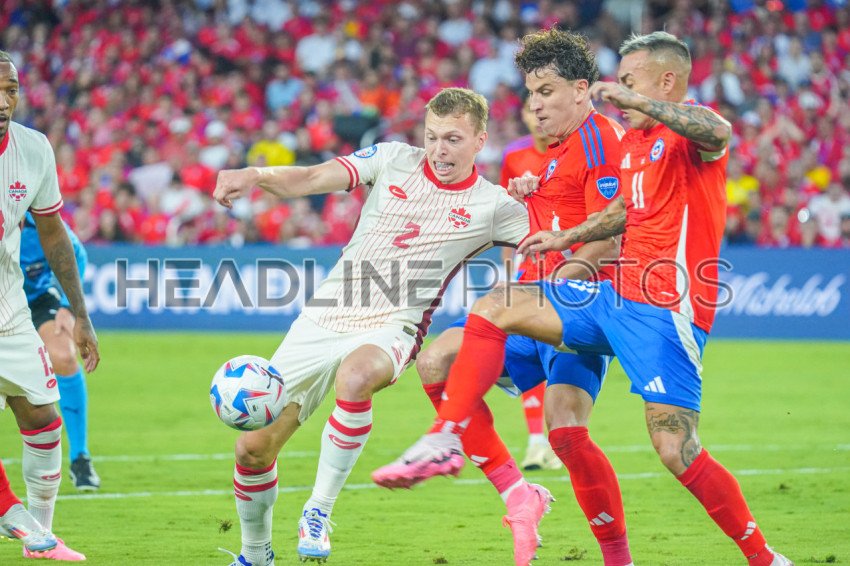 Orlando, Florida, USA, June 20, 2024, Canada right-back Alistair Johnston #2 look to make a kick during the 2024 Copa America at Inter&Co Stadium. (Photo Credit: Marty Jean-Louis)