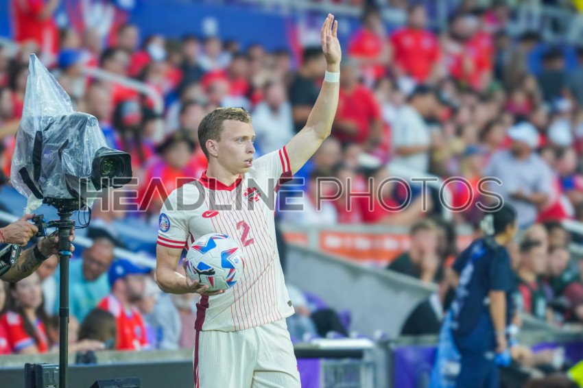 Orlando, Florida, USA, June 20, 2024, Canada defender Alistair Johnston #2 readies to make a throw during the 2024 Copa America at Inter&Co Stadium. (Photo Credit: Marty Jean-Louis)
