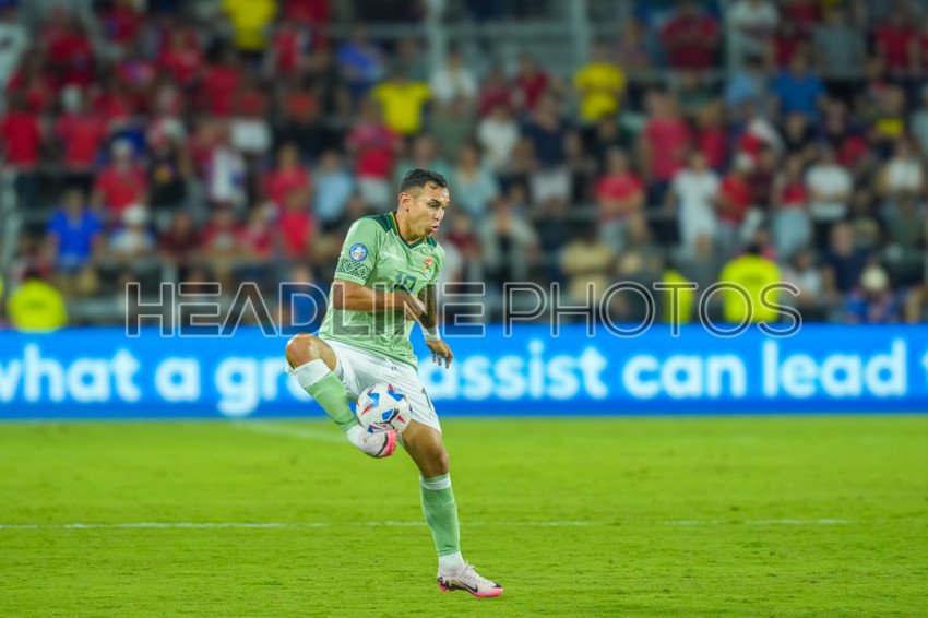 Orlando, Florida, USA, June 20, 2024, Bolivia player Bruno Miranda #19 receives a pass during the 2024 Copa America at Inter&Co Stadium. (Photo Credit: Marty Jean-Louis)
