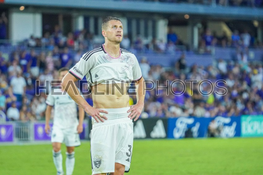 Orlando, Florida, USA, July 6, 2024, DC United player Lucas Bartlett #3 looks on after receiving a red card at Inter&Co Stadium. (Photo Credit: Marty Jean-Louis)