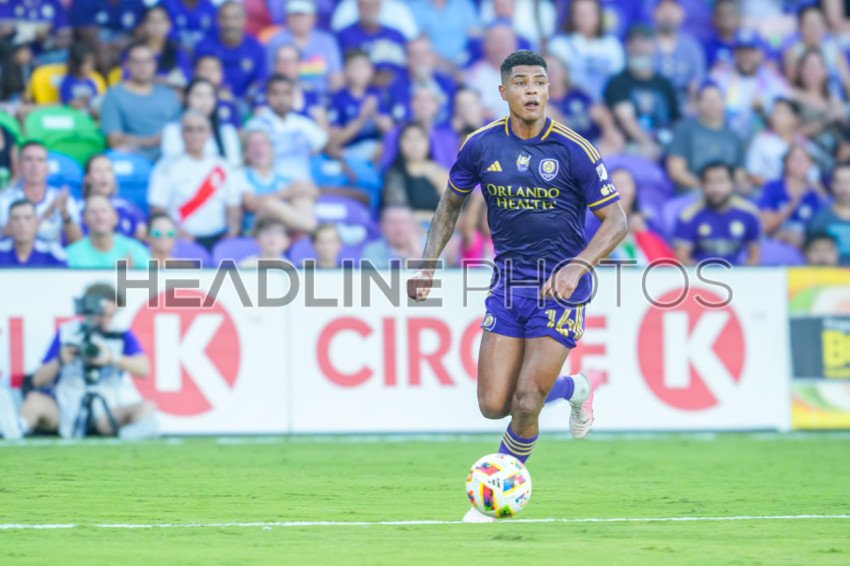 Orlando, Florida, USA, July 6, 2024, Orlando City SC pdefender Wilder Cartagena #16 look to make a pass at Inter&Co Stadium. (Photo Credit: Marty Jean-Louis)
