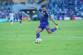 Orlando, Florida, USA, July 6, 2024, Orlando City SC player Martín Ojeda #11 takes a shot resulting in goal at Inter&Co Stadium. (Photo Credit: Marty Jean-Louis)
