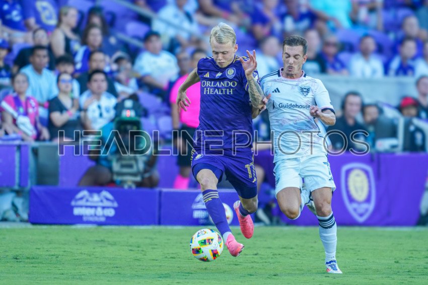 Orlando, Florida, USA, July 6, 2024, Orlando City SC defender Dagur Dan Þórhallsson #17 rushes forward at Inter&Co Stadium. (Photo Credit: Marty Jean-Louis)