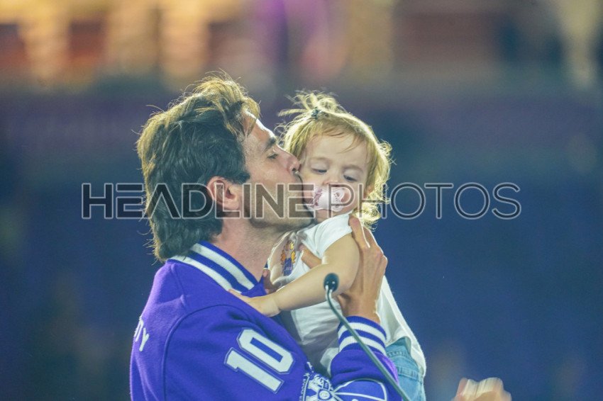 Orlando, Florida, USA, July 6, 2024, Ricardo Kaka kissing his baby girl during the Legends Terrace Induction ceremony at Inter&Co Stadium. (Photo Credit: Marty Jean-Louis)