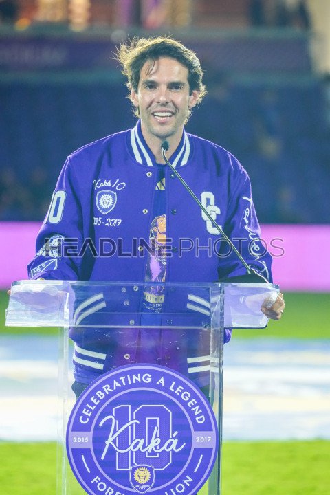 Orlando, Florida, USA, July 6, 2024, Ricardo Kaka speaking during the Legends Terrace Induction ceremony at Inter&Co Stadium. (Photo Credit: Marty Jean-Louis)