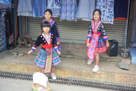 Local kids wearing traditional dress in the small village in Ban Doi Pui, Thailand