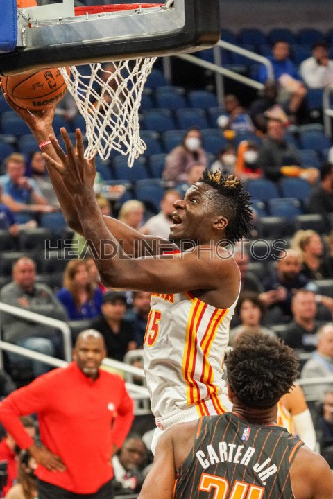 Orlando, Florida, USA, December 15, 2021, Atlanta Hawks Center Clint Capela #15 attempt to make a basket during the first quarter at the Amway Center. (Photo Credit: Marty Jean-Louis)