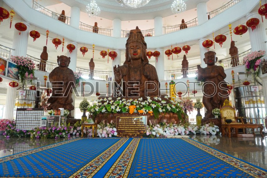 Statues inside The red Temple in Wat Huay Pla Kang, Thailand