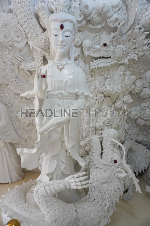 statue inside the Buddha statue near The red Temple in Wat Huay Pla Kang, Thailand