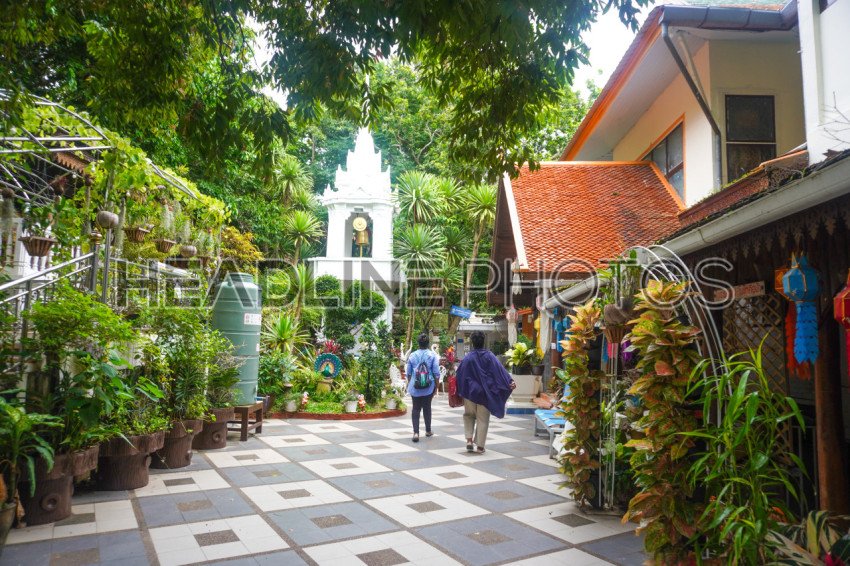 Tourists walkint atThe gold Temple ground in Wat Prathat Doi Suthep, Thailand