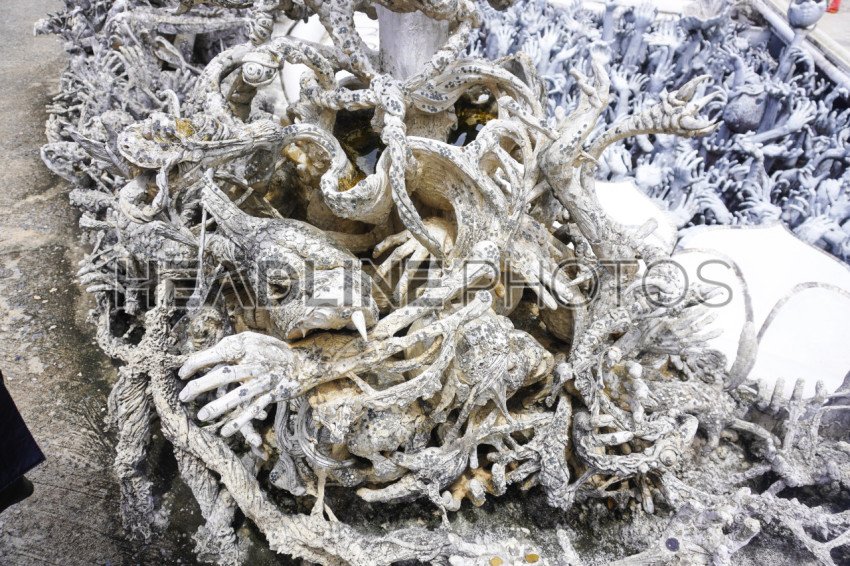 Skulls at the entrace of the white Temple in WatRong Khun, Thailand