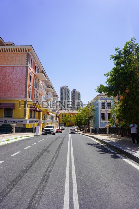 Street in porto Arabia in Pearl overlooking the fairmont luxury resort In Doha, Qatar