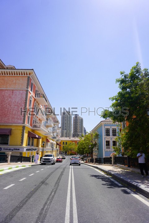 Street in porto Arabia in Pearl overlooking the fairmont luxury resort In Doha, Qatar