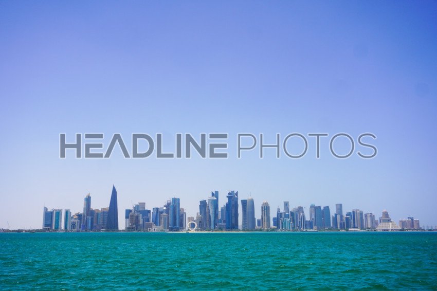 Doha Harbor and City Skyline in Distance In Doha, Qatar